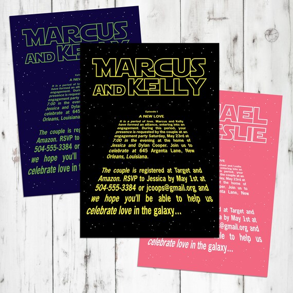 Star wars wedding invitations. We don’t want it to look like a child’s birthday party. Check out this star warsthemed wedding ceremony in florida and see more inspirational photos on TheKnotcom. Star Wars Invitation / Star Wars Engagement Party Invite Personalized, Printable Star Wars Wedding Invitation / Star Wars Shower Invite FrockGraphicDesign From shop FrockGraphicDesign 5 out of 5 stars (93) 93 reviews $ 1000 FREE shipping Favorite Add to.