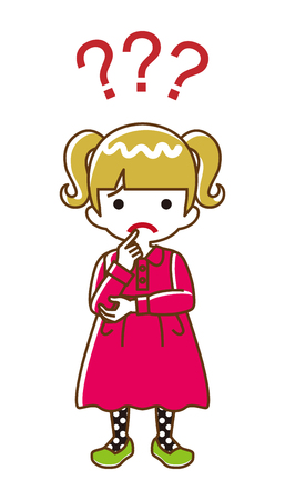 Toddler Girl Who Has Doubt Something With Three Question Marks Full Length Line Art Tasmeemme Com