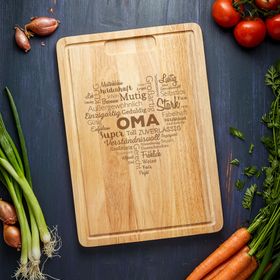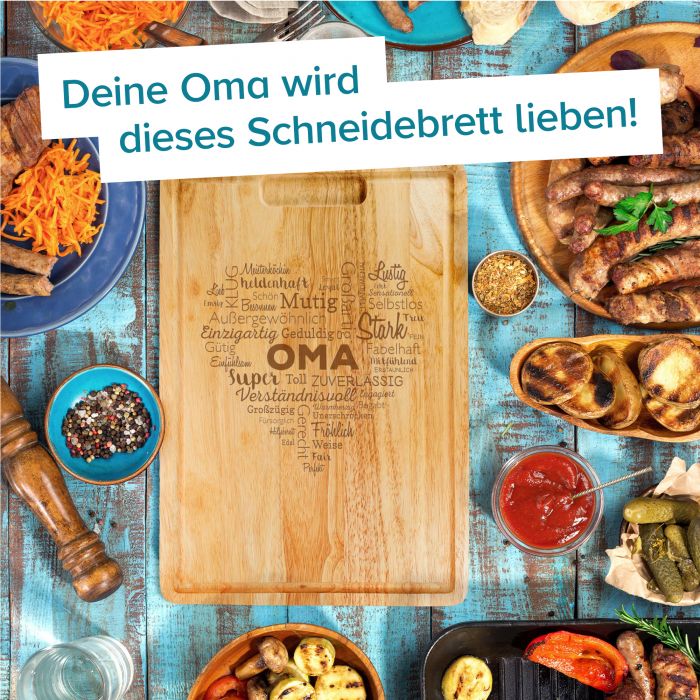 Schneidebrett mit gravur oma. Schneidebrett mit Gravur Beste Oma Das schöne Schneidebrett besteht aus massivem Buchenholz und besitzt eine praktische Ablaufrinne Die schöne Krone auf dem "Beste Oma" wirkt majestetisch und edel Den Namen Deiner Oma tauschen wir selbstverständlich aus Das Brettchen wird mit einer modernen Lasergravur gefertigt. Das große Schneidebrett mit Gravur – Wortherz für Oma ist nicht nur eine große Hilfe beim Kochen, es zaubert Oma auch immer wieder ein Lächeln auf das Gesicht Das Tranchierbrett mit einer praktischen Saftrille wird mit dem Schriftzug „Oma“ sowie einer Vielzahl von tollen Eigenschaften, die eine perfekte Oma ausmachen, graviert. Das Schneidebrett mit Gravur für Oma Herz aus Worten ist natürlich nicht nur ein Geschenk, dass man seiner Großmutter zu Weihnachten bereiten kann Ein Schneidebrett kann man schließlich zu jeder Jahreszeit gebrauchen So kann das robuste Brett für die Küche auch als ein Geburtstagsgeschenk oder als eine Zuwendung zwischendurch dienen!.