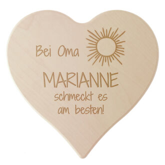Servierbrett mit Gravur bitte oben den/ie Wunschnamen angeben!. Unser Schneidebrett mit Gravur und Spruch für Omas erinnert Großmütter daran, wie wichtig diese eine geheime Zutat ist Abgesehen von dem schönen Spruch ist es aber auch ein praktisches und großzügig bemessenes Brett, das in der Küche sicherlich regelmäßige Verwendung finden wird. Schneidebrett mit Gravur für Oma Herz aus Worten Hochwertiges Schneidebrett mit einem eingravierten, aus Worten geformten Herz für Deine Oma Geburtstag, Nikolaustag, Weihnachten ein tolles Geschenk zu jedem Anlass Nicht die Zwiebeln, sondern die Geste bringt Deine Großmutter vor Glück zum.