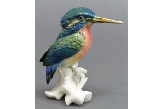 Porzellanvogelmanufaktur Karl Ens Volkstedt Eisvogel Bemalt Um 1930 Bodenmarke H 13 Cm