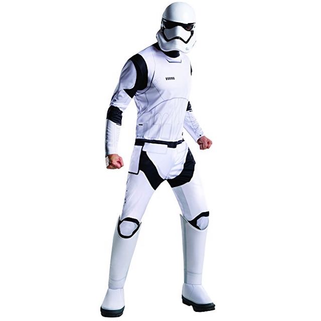 Adult Stormtrooper Costume Deluxe Star Wars Item# Product Description Online Only Sold Out Description Follow the ways of the dark side with this awesome Stormtrooper costume!. The included white jumpsuit has muscular padding and comes printed with intricate details to reflect Stormtrooper armor from the original Star Wars Trilogy Also included in the set are arm guards, a belt for ammo, a molded plastic chest piece, and a helmet mask to give them that signature Stormtrooper look. Find adult Star Wars costumes for all of your favorite characters from the movie including Darth Vader, Luke Skywalker, Clone Troopers, and many others Check out these great Star Wars costume ideas for adults!.