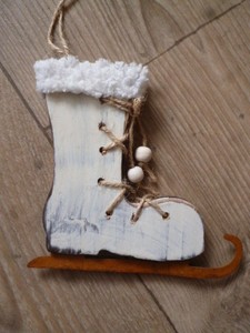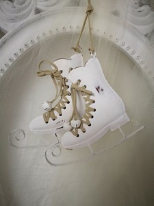 Christbaumschmuck Schlittschuh Winter Deko Weihnachten Holz Shabby Chic Vintage Landhaus Weiss Mobel Wohnen