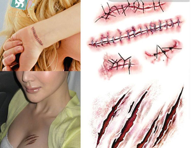 Mua Narben Tattoo Halloween Temporare 30 Blatt Wunden Zombie Schminke Gefalschter Scab Blut Kratzer Aufkleber Cosplay Sicher Fur Die Haut Tren Amazon Anh Chinh Hang Fado