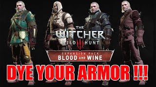 Improve the look of your armor in The Witcher 3 Blood and Wine with these Toussaintonly armor dyes Either purchased from vendors or found in the environment, dyes allow Geralt to alter the. SOLVED Okay i want to dye my armor, but i can't find any dye at all I looked at mercant, armorer, herbalist, the only thing they sell just Dye Solution (for mixing dye). I noticed a tip while my game was loading saying that I can dye my witcher gears Is it as simple as buying dyes from some merchants and applying them?.