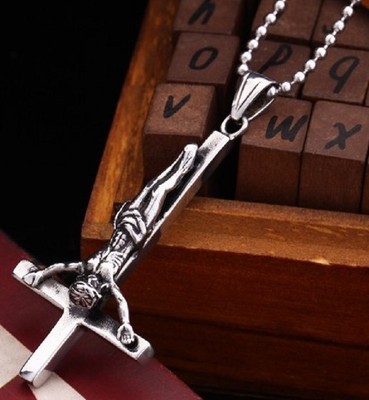 Edelstahl Anhanger Jesus Kreuz Antichrist Umgedrehtes Kreuz Kugelkette 60cmak11 Ebay