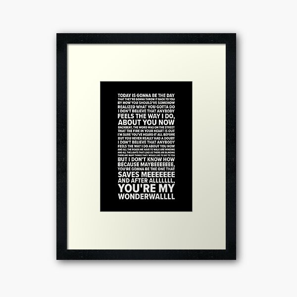 Oasis Wonderwall Song Lyrics Print Framed With Mount Best Gift Present Ideas For Any Anniversary Valentines Day Or First Dance Wedding Gift For Bride And Groom For Christmas Or A Birthday