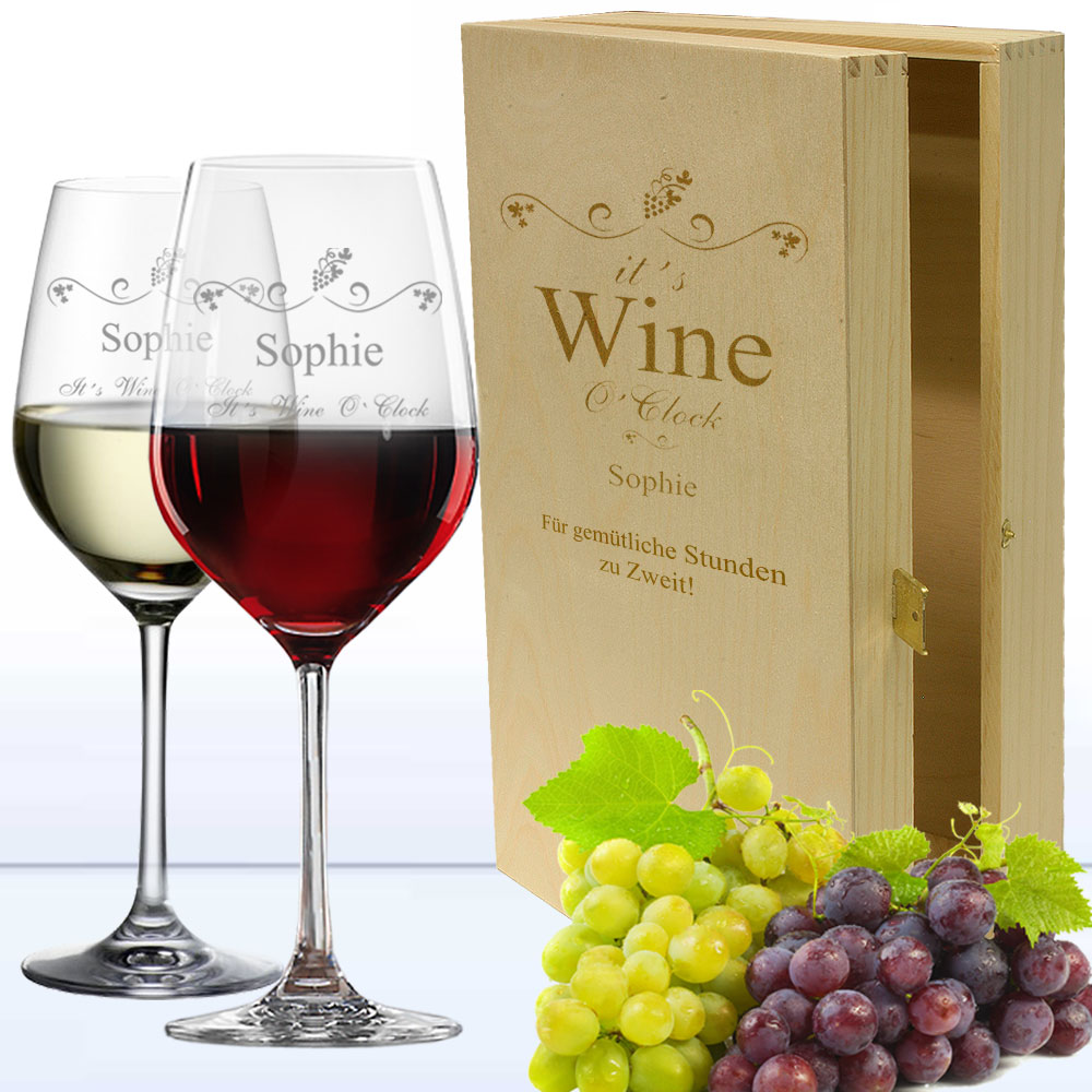 Weinglaser In 2er Holzkiste Wine O Clock Mit Namen Geschenkplanet