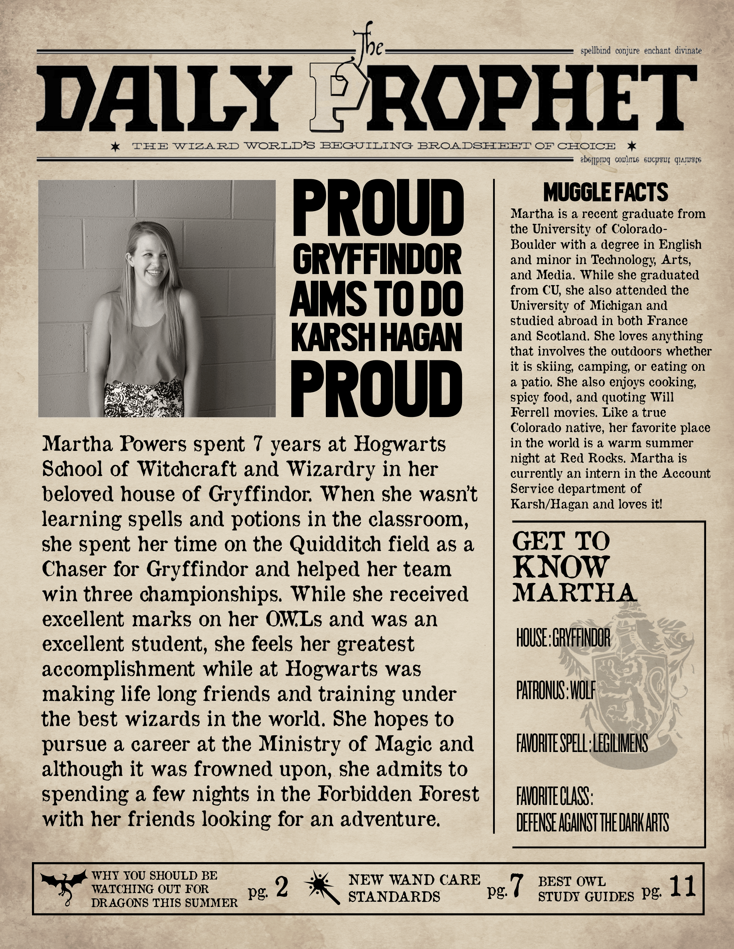The Daily Prophet have exclusive breaking news regarding the case of the missing wand, which we now can reveal was passed between multiple people on the night of Mr Bagnold’s death Photos from Prophet photographer Edward Tonks, show the wand in posession of Mrs Bagnold’s eldest son Harrison Bagnold, fashion journalist Camille Rowle and. It’s high time us Muggles got our hands on the hardware used to take Magical Photographs as seen in The Daily Prophet. The Daily Prophet Tumblr page is being forced to cut back on the number of posts it makes after the sudden death of Editor Alhurst Brown The circumstances surrounding Brown’s death are rather fishy, and more details are provided on page 2 As additional information becomes available, the Daily Prophet will make sure to send it out as quickly.