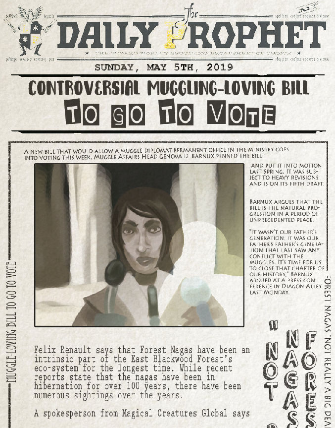 Monday 1st of January 18 Issue #4 GeneisisOfIdiocy Welcome to the New Year’s issue of the Daily Prophet!. The Daily Prophet is a wizarding newspaper based in London, England and is the primary source of news for British and Irish wizards1 The current Editor in Chief is Barnabas Cuffe,2 who works in the main office located in Diagon Alley1 Because of the newspaper's ability to influence the minds of many in the British and Irish wizarding communities, it has been known to print slantedcontent at. The Daily Prophet have exclusive breaking news regarding the case of the missing wand, which we now can reveal was passed between multiple people on the night of Mr Bagnold’s death Photos from Prophet photographer Edward Tonks, show the wand in posession of Mrs Bagnold’s eldest son Harrison Bagnold, fashion journalist Camille Rowle and.