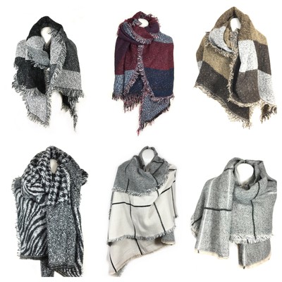 Xxl Damen Winter Schal Schwarz Grau Dick Strickschal Karo Halstuch Poncho Stola Ebay