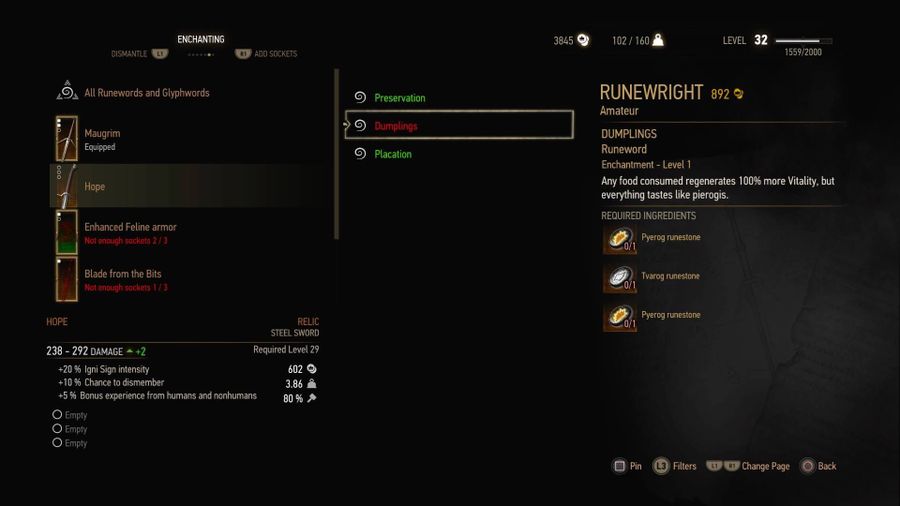 Runeword Glyphword Enchantments Witcher 3 Hos