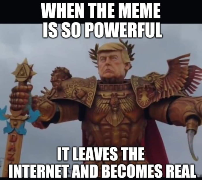 God Emperor Trump refers to fantasy depictions of United States President Donald Trump as a ruler of the entire world often who is often shown wearing the armor of the immortal character Emperor of Mankind from the miniature wargame Warhammer 40,000 Origin The exact origin of the God Emperor Trump character is unclear.