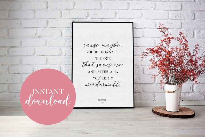 Oasis Wonderwall Print Digital Download Lyric Prints Digital Download Etsy Wonderwall