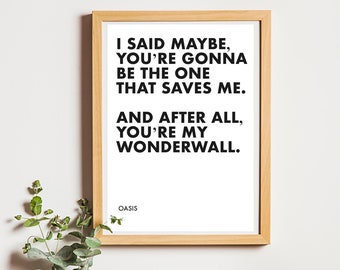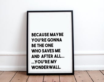 Wonderwall Lyric Print I Said Maybe You Re Gonna Be The Etsy