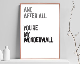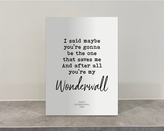 Oasis 'Wonderwall' (Official Video)Taken from the album '(What's The Story) Morning Glory?’Directed by Nigel DickSUBSCRIBE ︎ https//Oasislnkto/YTSubsc. (1995) According to Gallagher, "Wonderwall" describes "an imaginary friend who's gonna come and save you from yourself". And After All You're My Wonderwall Lyric Print / Oasis Song Print / Fun Music Wall Art / 90s Music Poster / Home Decor Poster ShearPrints From shop ShearPrints 5 out of 5 stars (41) 41 reviews $ 1 Favorite Add to More colors WONDERWALL Oasis lyrics /8x6/7x5 print rock alternative gift fan art quote What's The Story Morning Glory home.