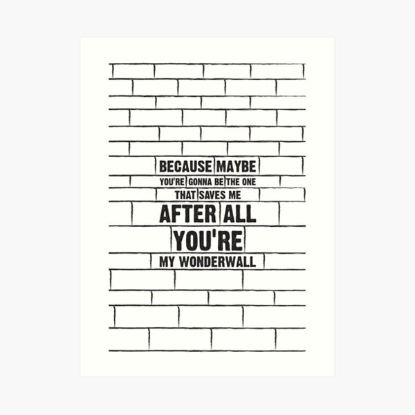 Youre my wonderwall print. Each collaboration gives some inspiration to the family run business to create great designs for print or canvas Related products Ermintrude £ 999 – £ 3499;. A C#m nd after a A ll, B You're my wonderwall E D E B Bridge At this point in the song, the pitch and tone are altered and the song becomes slightly deeper. Valentines Card for Boyfriend Liam Gallagher You're My Wonderwall Valentine Card Funny Art Print Oasis Manchester Music Gift for Him Husband Rock Music Card I Love You Card Amazoncouk Office Products.
