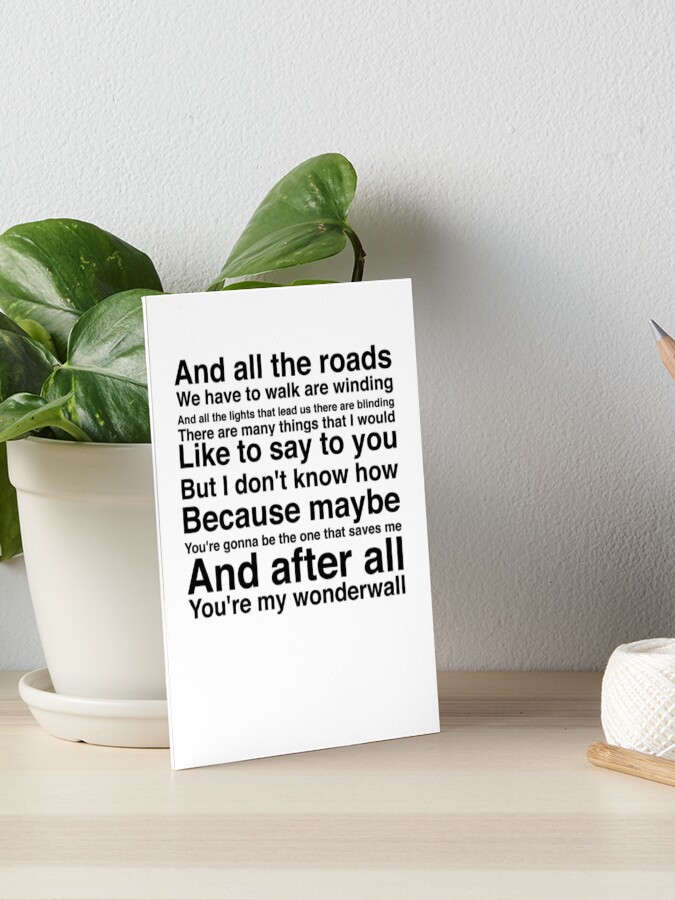 Your celebrity destination for the latest celebrity gossip, news, videos, photos and more Wonderwall is your interactive guide to all that is celebrity. 'You're My Wonderwall' black or grey and white typography set of prints Wonderwall Oasis song lyrics set Available in 6 x 4", 7 x 5", , A3, & A1 Printed onto 0gsm premium paper stock All prints are sent in a card hard backed envelope or postal tube to ensure safe delivery Please note, the frame is not included. Valentines Card for Boyfriend Liam Gallagher You're My Wonderwall Valentine Card Funny Art Print Oasis Manchester Music Gift for Him Husband Rock Music Card I Love You Card Amazoncouk Office Products.