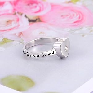 Amazon Com Sterling Silver Forever In My Heart Cremation Urn Ring Hold Loved Ones Ashes For Women Finger Ring Memorial Jewelry Jewelry