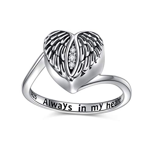 925 Sterling Silver Heart Angel Wings Cremation Urn Ring Hold Loved Ones Ashes Finger Rings Memorial No Longer By My Side But Forever In My Heart Jewelry 7 8 9 10 Rings Clothing Shoes Jewelry