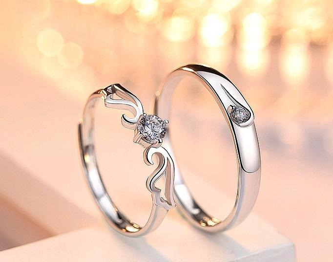 2pcs True Love Matching Couple Rings Adjustable 925 Sterling Silver Wedding Promise Ring Set For Him And Her Shopee Singapore