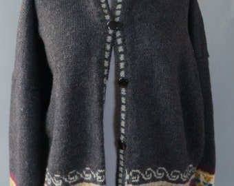 Damen Island Jacke Woll Strickjacke Cardigan Schwarz Mit Knopfen Norweger