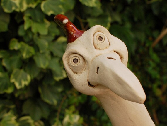 Lustige Gartenkeramik Vogel Mit Rotem Kamm Beetstecker Etsy