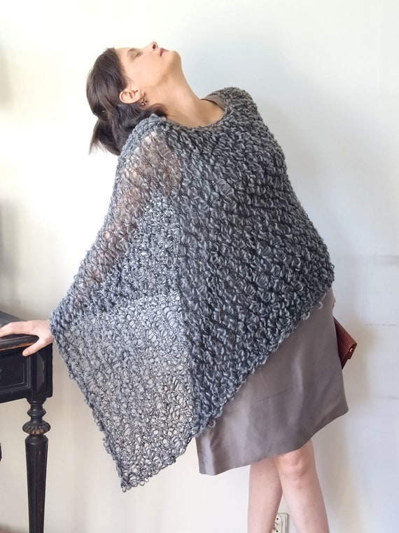 Alpaka Lose Stricken Poncho Fur Frauen Grau Fuzzy Poncho Etsy