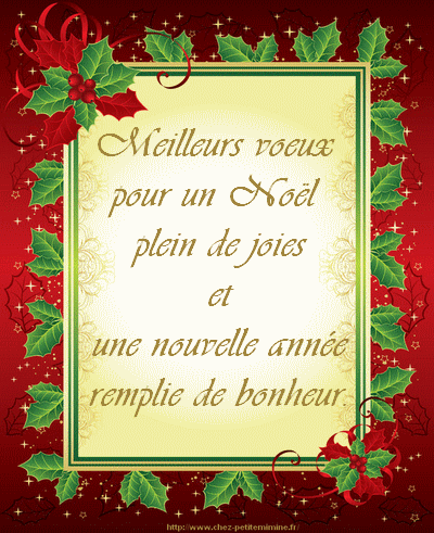 _____ Joyeux Noël Que Noël et le Nouvel An laissent derrière eux des souvenirs aux couleurs du bonheur _____ Voeux de bonheur pour un Joyeux Noël et une Heureuse Année _____ Nous vous souhaitons d'heureuses fêtes et beaucoup. Carte de bonne année , carte de Noël, carte à imprimer ou carte de vœux virtuelle animée et musicale gratuite loin d'être désuète, la tradition des cartes de vœux sont une belle illustration d’amour et d’amitié très appréciée des proches !. Et pour la Nouvelle Année, de grandes joies, à tout instant!.
