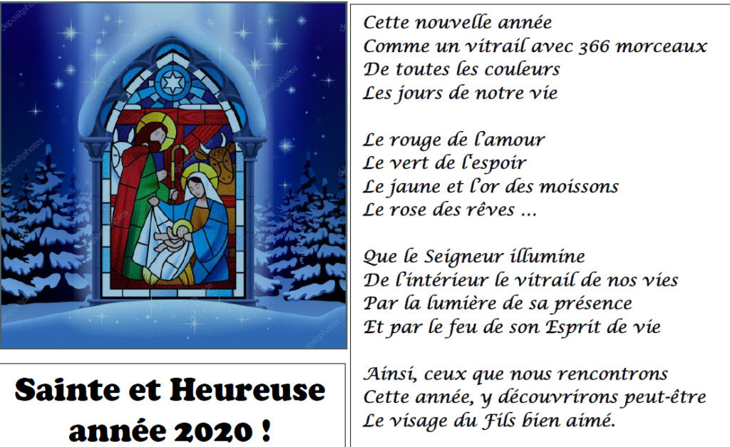 Bonne année 21 !" "Le soleil vient de se coucher sur et il s'apprête à se lever sur 21 !. 18 sera l’année où vous apprenez à maîtriser l’anglais !. Fraternellement, Léopold Vœux de l’Assemblée de Fabrique Les membres de l’Assemblée de fabrique vous remercient sincèrement pour la générosité que vous avez témoignée lors des différents appels à contribuer financièrement que ce soit l’appel spécial en remplacement des quêtes dominicales pendant que nos églises étaient.