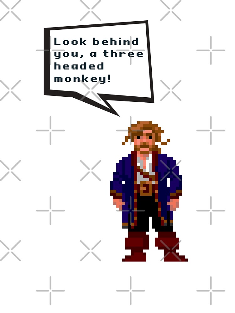 Guybrush Threepwood Look Behind You A Three Headed Monkey Kids T Shirt By Kidronin Redbubble