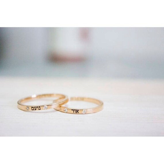 Rings Set 2 Rose Gold Name Ring Diamonds And Rose Gold Ring Etsy