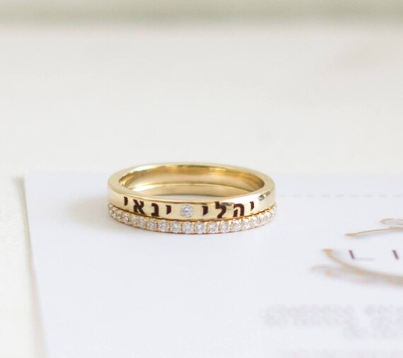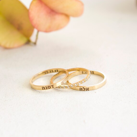 Rings Set Stacking Name Ring Gold Band Diamond And Gold Etsy