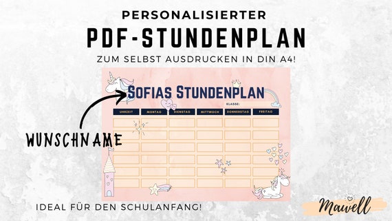 Einhorn Stundenplan Personalisiert Mit Wunschnamen Zum Etsy