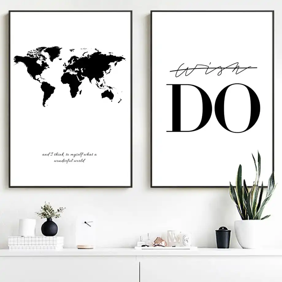 World Map Motivational Wall Art Posters Canvas Prints Minimalist Black White Painting Nordic Style Pictures Living Room With Free Shipping Worldwide Weposters Com