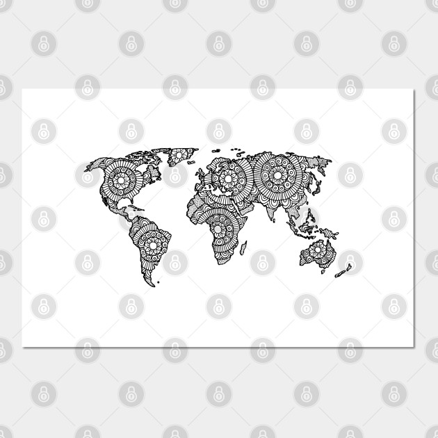 Black And White Mandala World Map Map Of The World Posters And Art Prints Teepublic