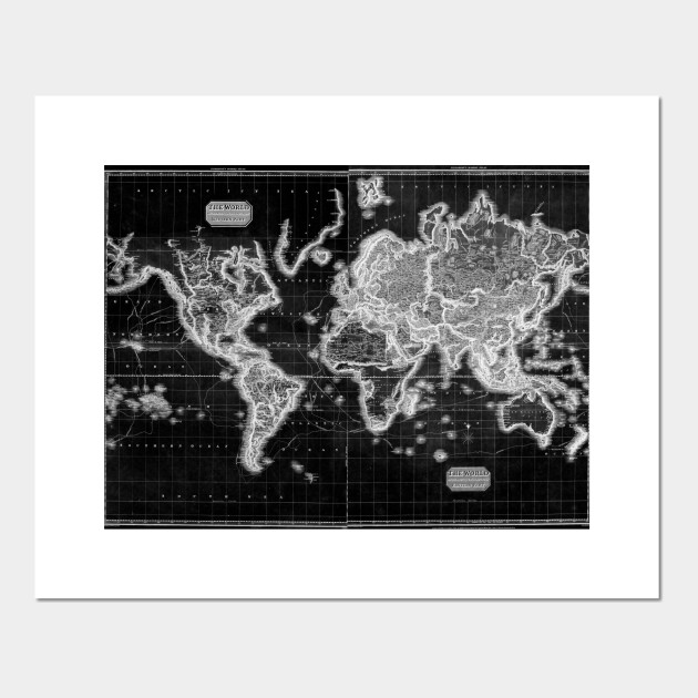 Black And White World Map 1812 Inverse World Map Posters And Art Prints Teepublic