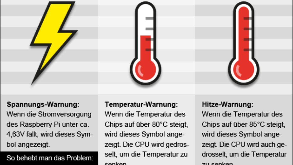 Raspberry Pi Gelber Blitz Und Rotes Thermometer Das Bedeuten Die Symbole