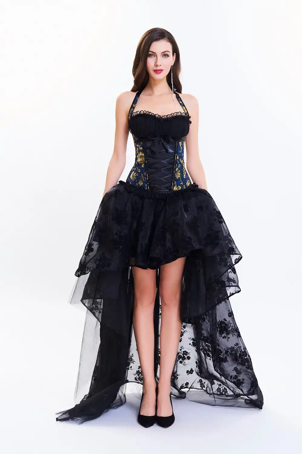 Blue Floral Brocade Halter Sexy Corset Dress Victorian Steampunk Dress Gothic Clothing Corsets And Bustiers Burlesque Outfit Bustiers Corsets Aliexpress