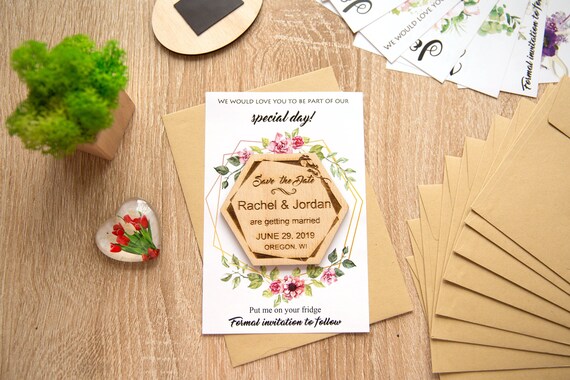 50Pcs Round Wooden Wedding Magnets, Rustic Save The Date Magnets Wood Custom Wedding Tree Invitation 91 Score Buy on Amazon 4 Personalized Wooden Wedding Magnets, Personalized Refrigerator Magnets, Custom Save The Date Magnets 87 Score Buy on Amazon 5. These wedding magnets give the perfect rustic look with the options of coloured hearts, engraved motif or heart shaped hole Wooden Heart Save the Date Wedding Magnets Envelopes Made from 0gsm white card with peel and seal tab. The shipping was quicker than expected, and it was great to be able to track the order and its status online ahead of time The design is more unique than other save the dates I have seen as well We got a nice personalized letter with the shipment, which was a great addition!.