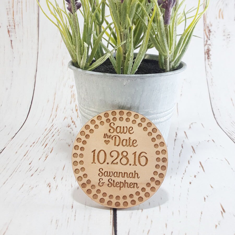 Laurel Wooden Magnet Save The Date Please note the minimum order qty for this product is 10 pcs generic samples can be purchased and will be shipped asapEach save the date is set to the template as pictured For any change of template please contact me first Otherwise all orders will be fulfilled to the given template. From first thing in the morning to last thing at night, people use their fridges It makes sense then to send save the date magnets that your guests can pop on the fridge so they’re regularly reminded of your wedding date – and it’s a totally unusual form of wedding stationery We’ve picked out some of our favourite magnetic save the dates, but if you’re looking for other ideas. Jul 7, 19 Wooden Save the Date Magnets Snail Mail Postage Grab your guests attention for your upcoming event with this fun and unique Save the Date Perfect for Weddings!.