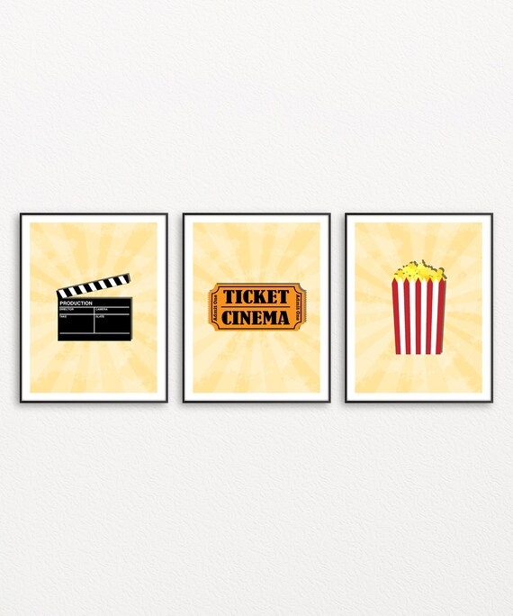 Movie Theater Decor Set Of 3 Home Theater Wall Art Retro Etsy