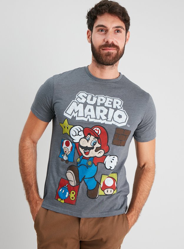 License Character Shop Super Mario Charcoal Grey T Shirt Tu Clothing