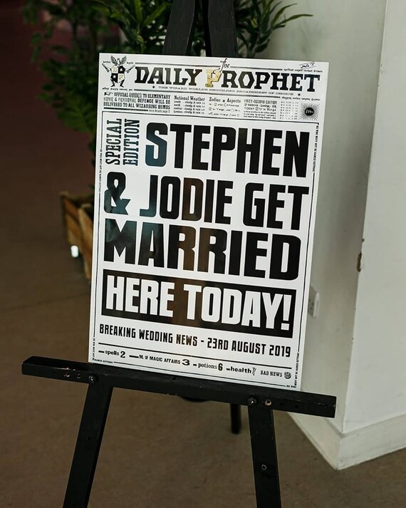 A3 Harry Potter Daily Prophet Wedding Welcome Sign Etsy