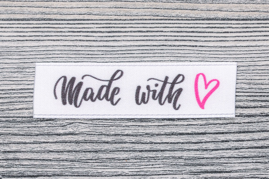 High Quality Woven Pre Designed Labels With The Inscription Made With Love With Taffeta