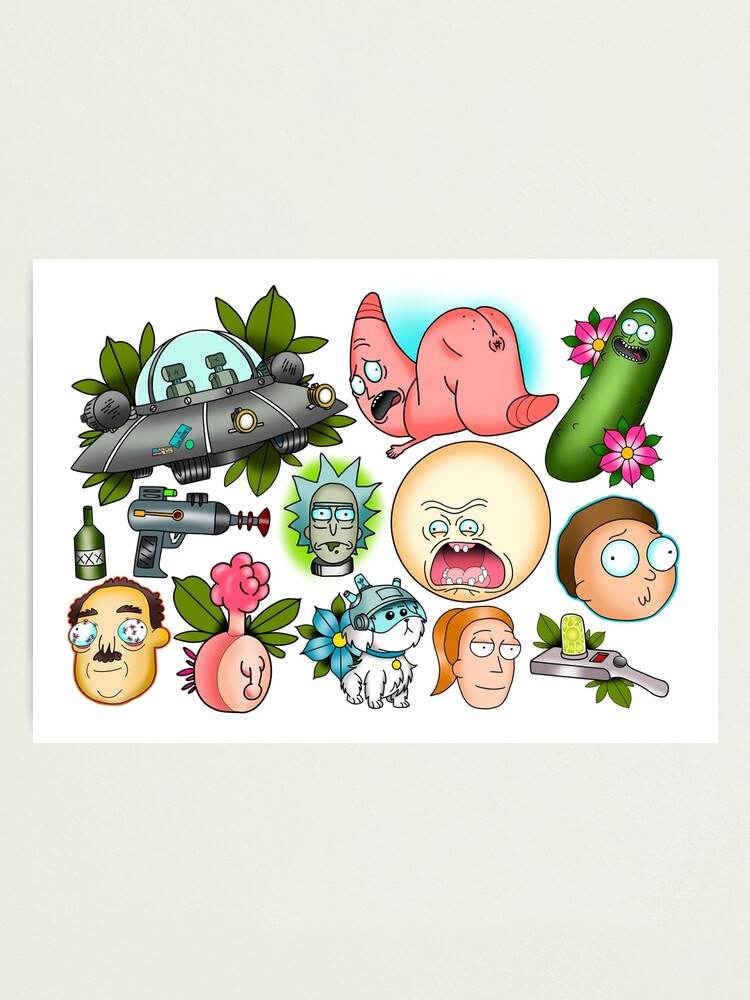 Rick And Morty Tattoo Style Flash Photographic Print By Kmillustration Redbubble