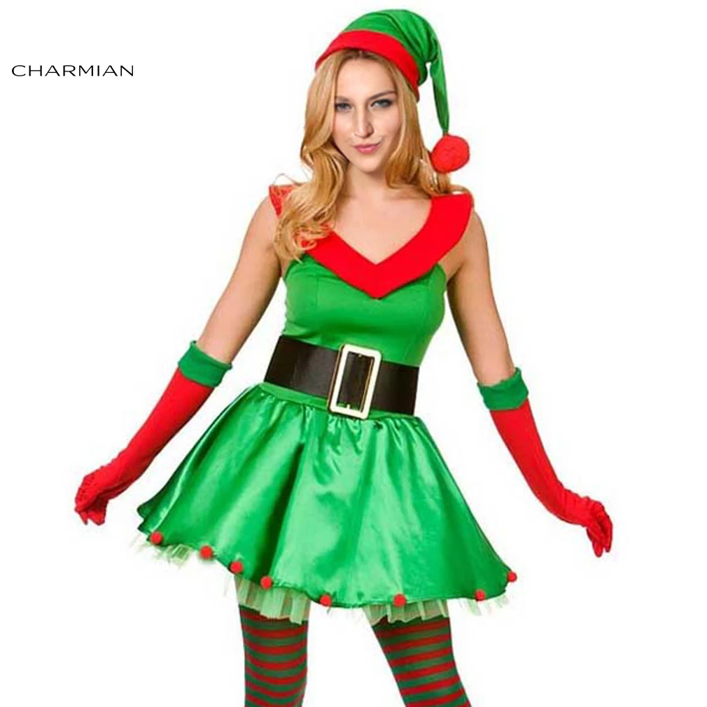 Charmian Sexy Elf Santa Little Helper Adult Women Green Santa Claus Christmas Costume Holidays Costumes Aliexpress