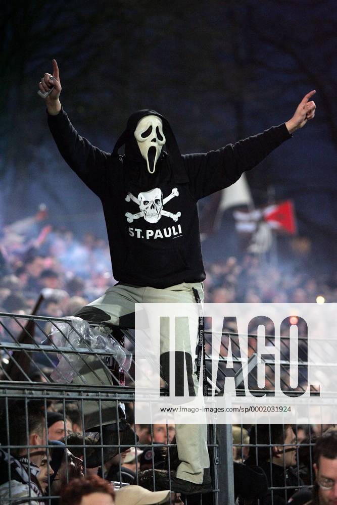 Sportfoto Ein St Pauli Fan Mit Scream Maske Sitzt Auf D
