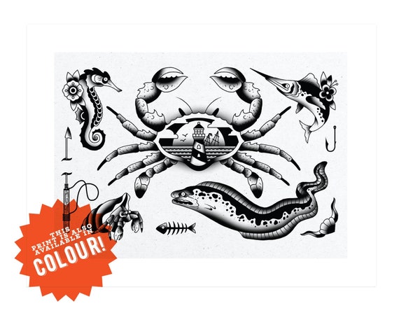 Traditional Tattoo Suit Crab Traditional Tattoo Flash Old Etsy