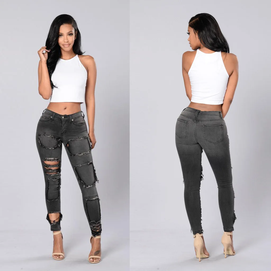 19 Fashion Hole Ripped Jeans Women Pants Slim Skinny Pencil Denim Vintage Straight Jeans Low Waist Casual Pants Female Jean Women Pants Woman Pants Slimjeans Low Aliexpress